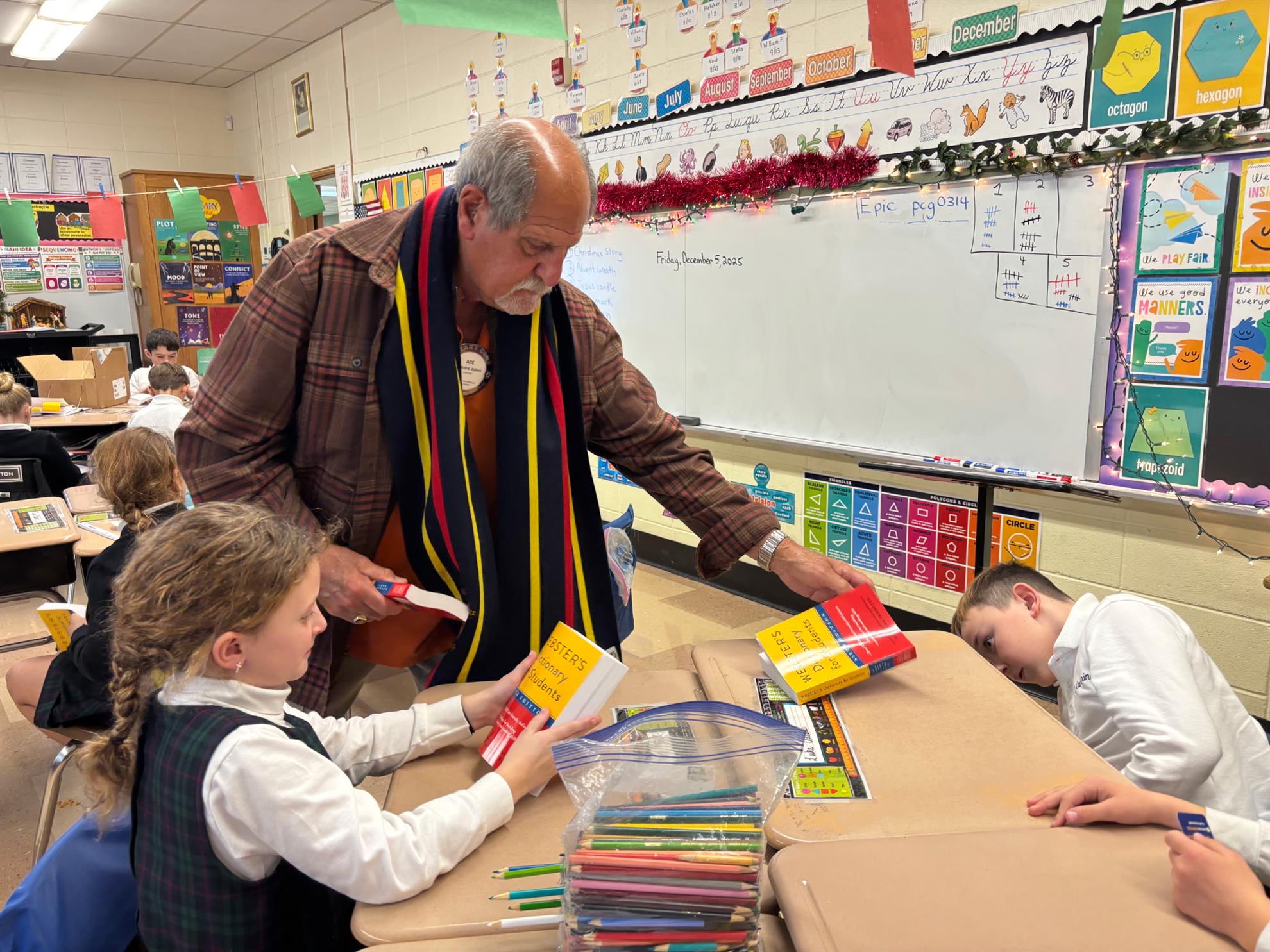 Spring Lake-Brielle Rotarian Ace Aljian distributed dictionaries to students at St. Catherine's School in Spring Lake.